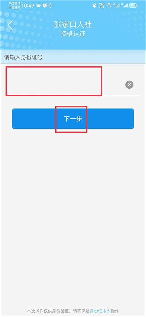 3、进入后需要先查询社保信息,将身份证输入后点击验证