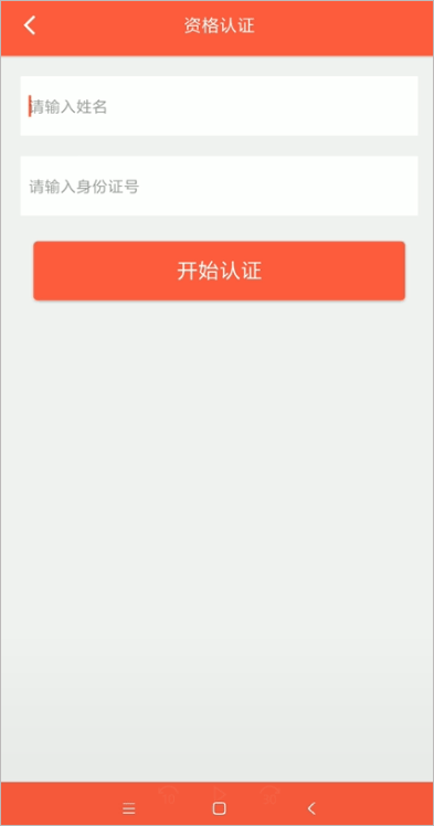 3、输入需要进行资格认证的人员姓名和身份证号,点击“开始认证”。