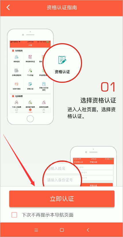 2、打开“待遇资格认证”,会出现“资格认证指南”的页面,点击“立即认证”即可进入到认证页面。