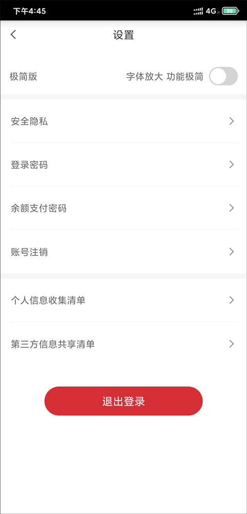 此外,新版本的肯德基app还新增了极简模式,开启该功能后,所有字体和图标都显著变大,界面上呈现出的元素也显著减少了,在极简版的首页,最显眼的标识就是“门店自取”和“外送到家”的两个点餐入口,保留了会员积分、卡包、会员码等内容,还新增了推荐菜单选项,对于口味固定的老年人来说非常好用。