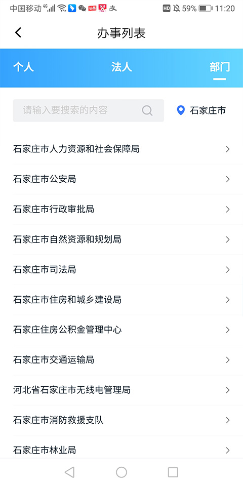 2、输入相关办事事项的关键字就可以智能查找出具体办事项目