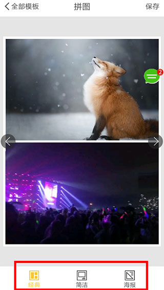 4、这样一来,只需要从拼图页面的下方选择模板,软件就会帮助大家自动拼接图片素材