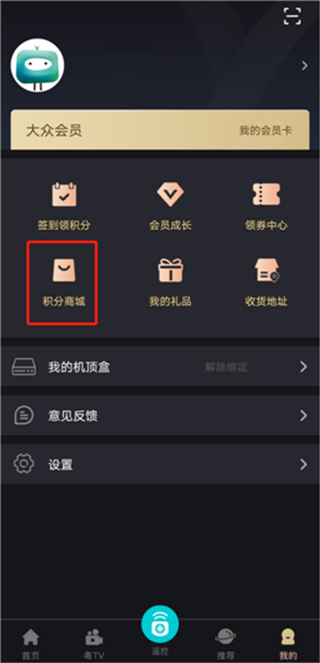 第二步:点击【我的】-【积分商城】进入商城页面