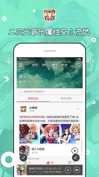二次元世界里的音乐爱好者秘密基地,无论是刷刷存在感,结交异(tong)性小伙伴,还是交流音乐属性,召唤幻音娘通通so easy,超多好玩哒内容等你来探索!
