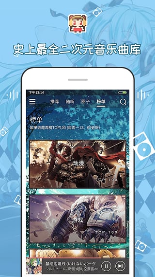 首创的专属个性随听算法,结合超海量二次元音乐曲库,为你专属提供独一无二的音乐口味,轻点指尖,遇见好音乐。