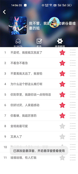 2、您可以打开浮动窗口功能,成功打开后可以直接在游戏界面下播放语音包,非常方便。