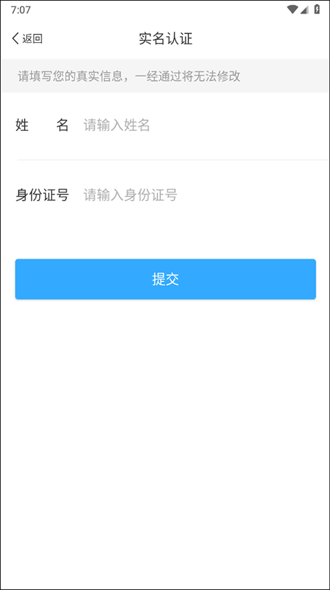 2、输入姓名和身份证进行实名认证