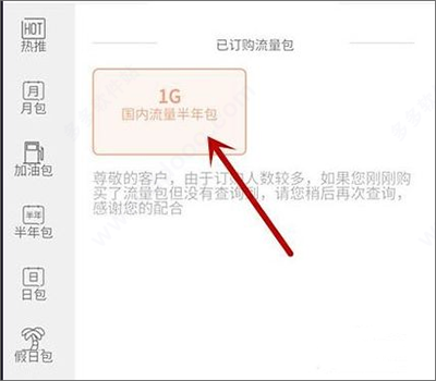 5、我们打开我的流量包之后,在已经定购的流量包中,点击想要退订的流量包。