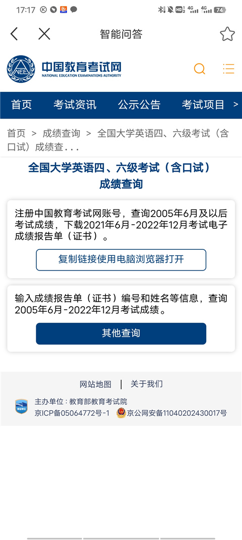 3、然后我们需要先在中国教育考试网中下载考试电子成绩报告单,然后点击下方的其他查询;
