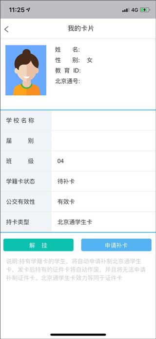 当前学期补卡超过2次的学生需到学校管理员处进行挂失并申请补卡。申请补卡成功后“北京市中小学云卡系统”会生成缴费订单,学生可自主缴费或家长、学校代缴。