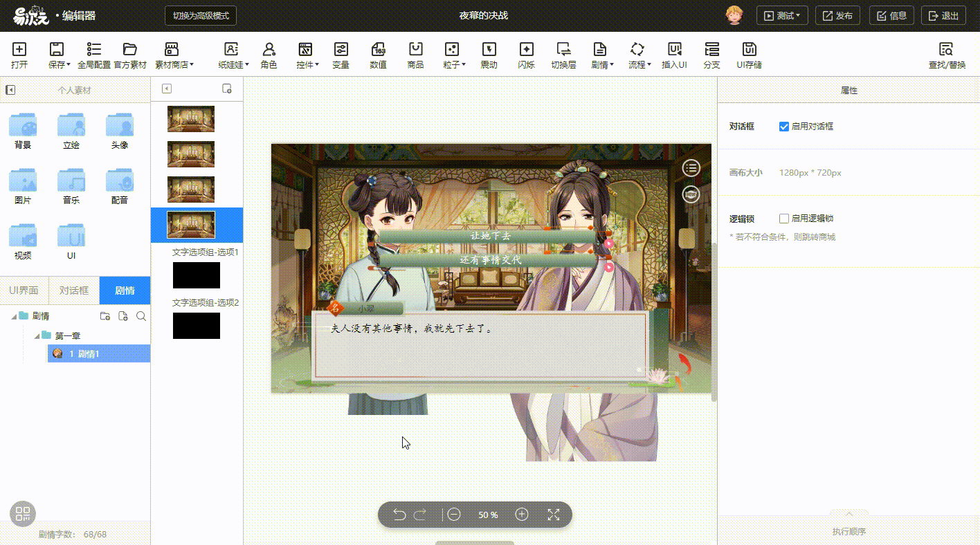 (1)在一个剧情 中制作完后,可以使用“添加剧情”按钮来添加新的剧情段。