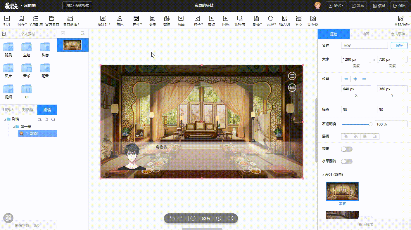 让我们再次使用官方素材库在画面上添加一个人物立绘。官方素材库的图片是可以预览的。