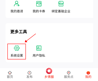 1、首先打开裕农通,在“我的”界面点击“系统设置”