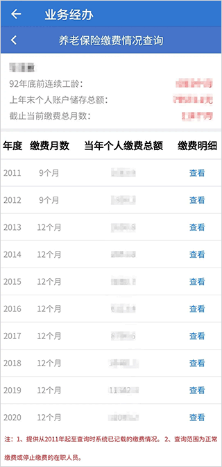 4、这样就能查到从2011年起至查询时系统已记载的缴费情况啦。