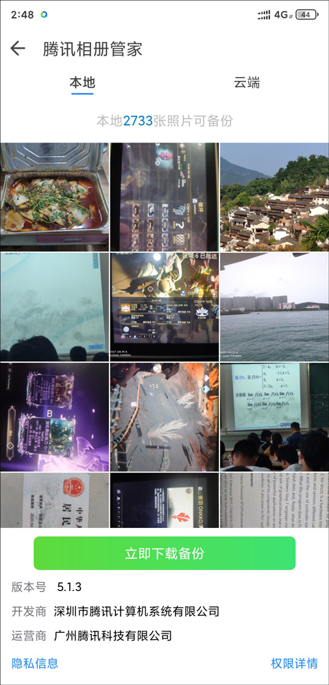 4、点击立即下载备份,上传照片,下载【相册管家】;
