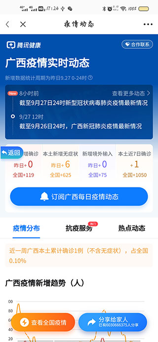 4、选择疫情动态,即可在线查询广西疫情情况。