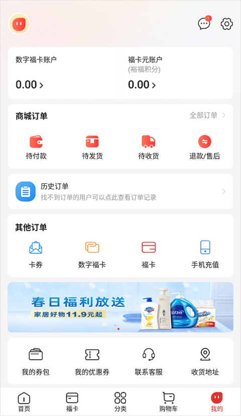 数字福卡app最新版是一款非常不错的手机购物软件,原名为福卡商城,在这里为用户提供了海量商品可以自由挑选购买,包括了服装百货、海淘正品、电器商城、休闲娱乐、男装女装、生活用品、休闲零食等等,种类繁多,满足用户的各种购物需求,同时还提供了云缴费、购影票、信用卡还款等多种生活常用功能,让你在手机上就能缴燃气费、电费、水费、宽带等等,非常方便。