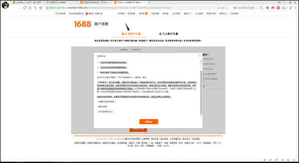 5、选择企业账户注册,点击同意协议。
