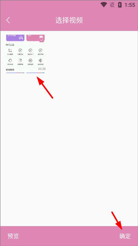 2、选择需要添加水印的视频,点击确定;