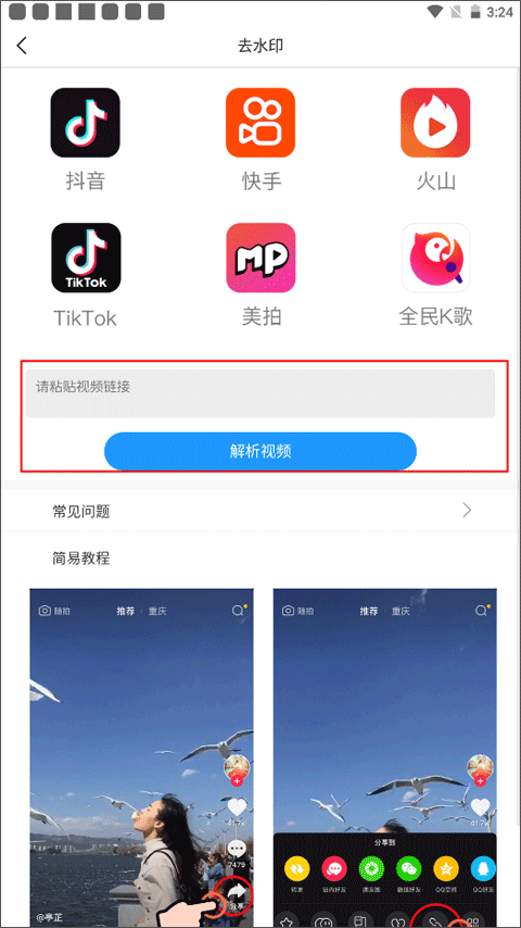 解析之后还有水印?我们能解析99%以上视频,但若原作者上传的视频本身就有水印暂无法去除。原视频是否有水印,请查看对应app播放时是否有水印。