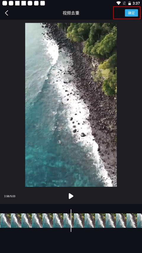 3、点击下方的播放按钮,定位你要停顿的位置,弄好以后点击右上角的确定开始处理。
