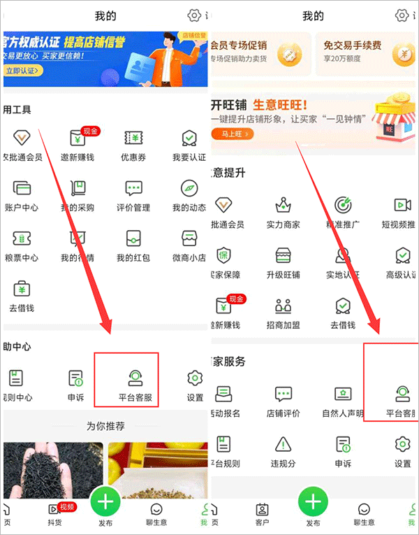 店铺开通后,您点击惠农网中间圆圆的发布按钮可发布您的商品(若店铺未开通,发布的商品为“待上架"状态,需开店后方可上架)。如果有采购商对您的商品感兴趣,可通过平台的转接电话或者聊生意联系您。