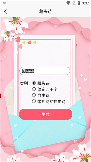 4、输入你想要说的告白话,点击生成藏头诗;
