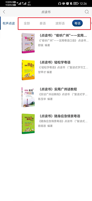 2、在上方栏目中可以左右滑动筛选自己想要点读的语言,并点击进入