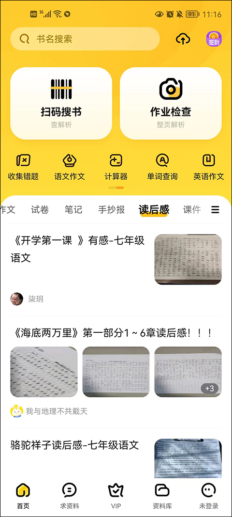 3、学习资料多:用户分享中小学各学科各类学习资料,包含习题解析、精品作文、各类试卷、优质笔记、手抄报、读后感课件等,和小伙伴们一起进步。