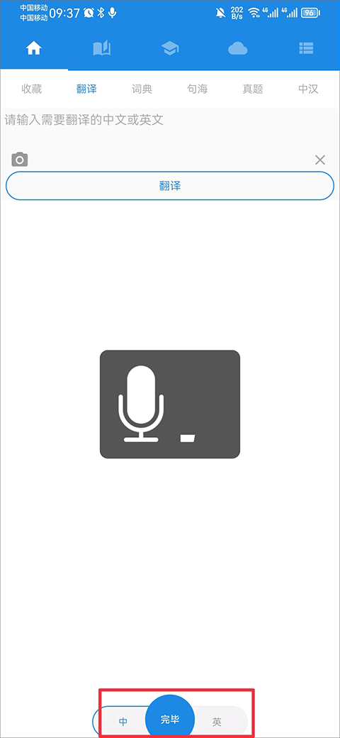 4、除了可以翻译中文或英文,你还可以使用软件查询中文和英文的词语、句子、真题,中汉等