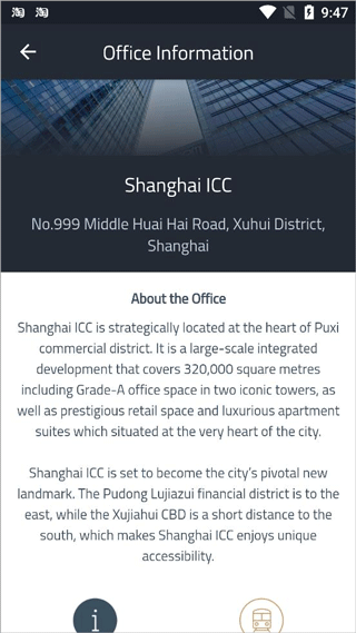 3、点击Office Information,可以查看商业大厦的介绍、地址以及联系方式;