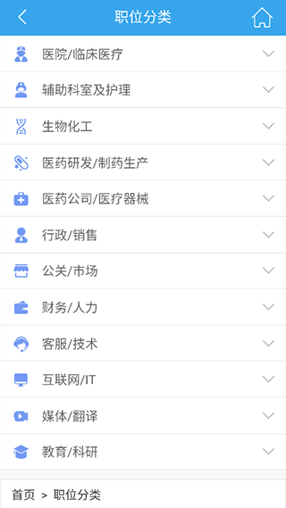4、返回主界面,点击职位分类,在这你将会更为详细的查看相关职业。