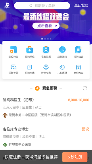 丁香人才网手机版是专门针对医学方面的小伙伴提供的一款手机招聘软件,内含有超过5万个医药相关职业,无论是脑科初级医生、各临床专业博士、神经内初中级医生,还是医学新媒体运营等等,都是可以来这里找工作,以及凭借丁香园的口碑和影响力,用户可以很轻松找到对应的职位。同时,软件拥有专业人才简历60万余份,旨在为各类企业事业单位持续输送人才及高端精英。除此之外,丁香人才网app分类也是十分的明确,涉及几十种医疗岗位,口腔招牌、护士招聘、药剂师等等,只要用户输入关键词就能搜索到相应的岗位,更为重要的是,这里汇集了最全面的求职意向招牌,众多医药企业会将他们的求职广告发布其中,每天此款软件都能将其推荐给广大用户,求职工作不用愁,分分钟搞定,有需要的朋友赶紧下载体验吧。