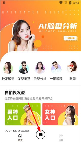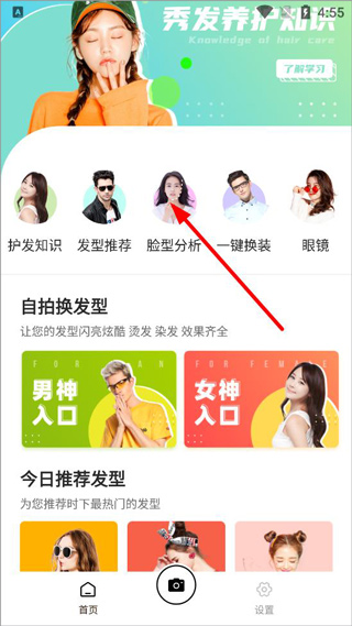 1、打开换发型测脸型app,点击软件首页中的脸型分析;