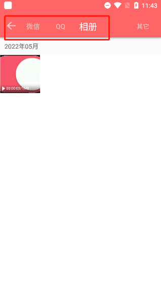 用户可快捷选择qq、微信或相册中的视频或图片文件,也可点击右上方的“其他”选择检索本地文件