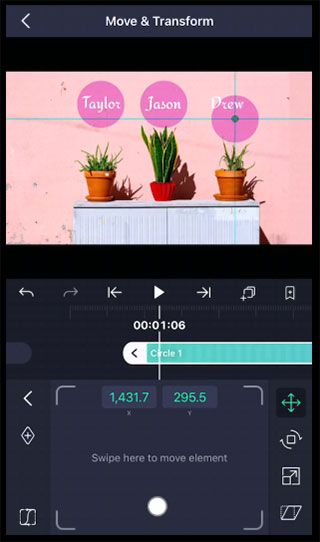 使用编辑面板(如“移动和转换")调整图层位置、颜色和其他属性。