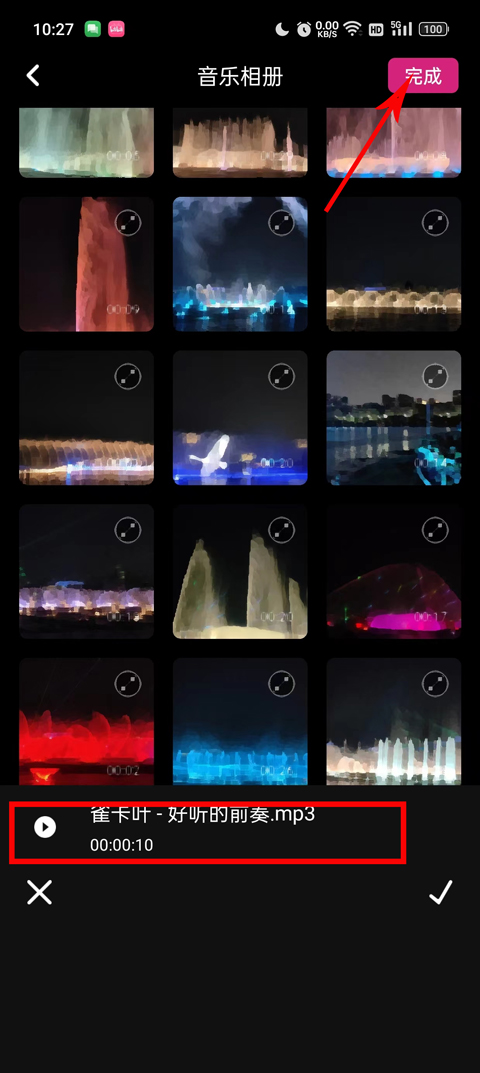 5、最后是添加视频的音乐,这是一个视频的灵魂,所以一个贴切的音乐非常重要,添加完音乐之后,点击完成即可。
