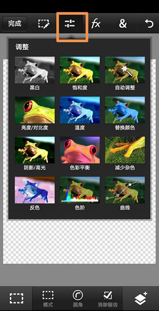 5、修改颜色和对比度,或者给您的图像添加事先设置好的过滤层。轻轻点击就能优化整个图像或者图像的一部分。
