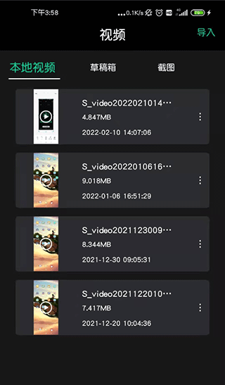 3、所有录制的视频都会保存在“我的视频”界面显示,可以对视频进行编辑、删除、分享、导出等操作;