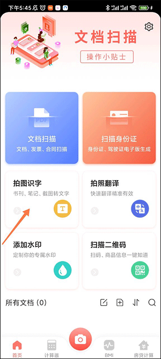 1、进入极速扫描大师app点击主页的拍图识字;