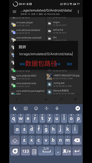 2、把数据包解压到路径/storage/emulated/0/Android/data/里面然后重命名把数据包为com.futuremark.dmandroid.application只下了测试经常用的Wild Life,