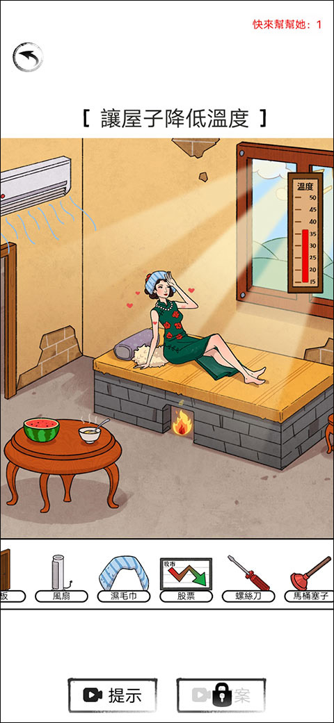 3、这里选择游玩的是快来帮帮她,选择第一关房屋降温。