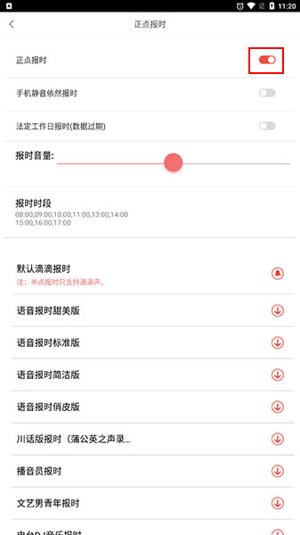 5、点击打开可以启用正点报时功能。