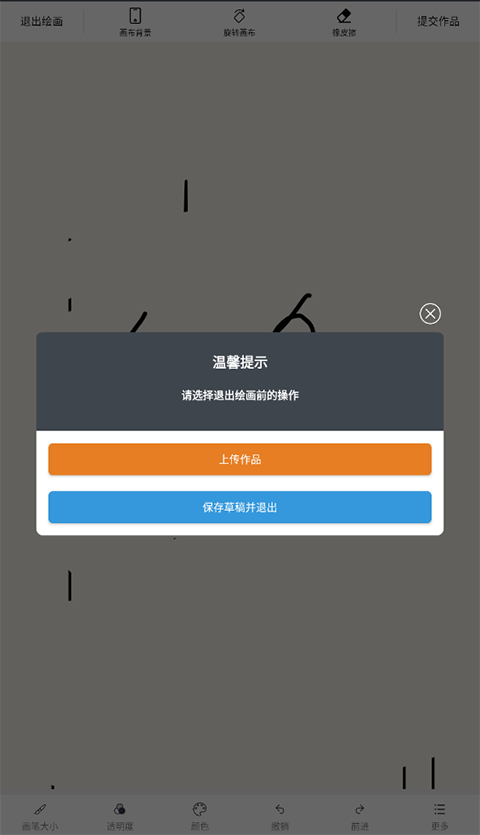 3、在绘画前先创建一个绘画草稿,创建好后在此页面即可进行自由绘画,画好后点击“退出绘画”