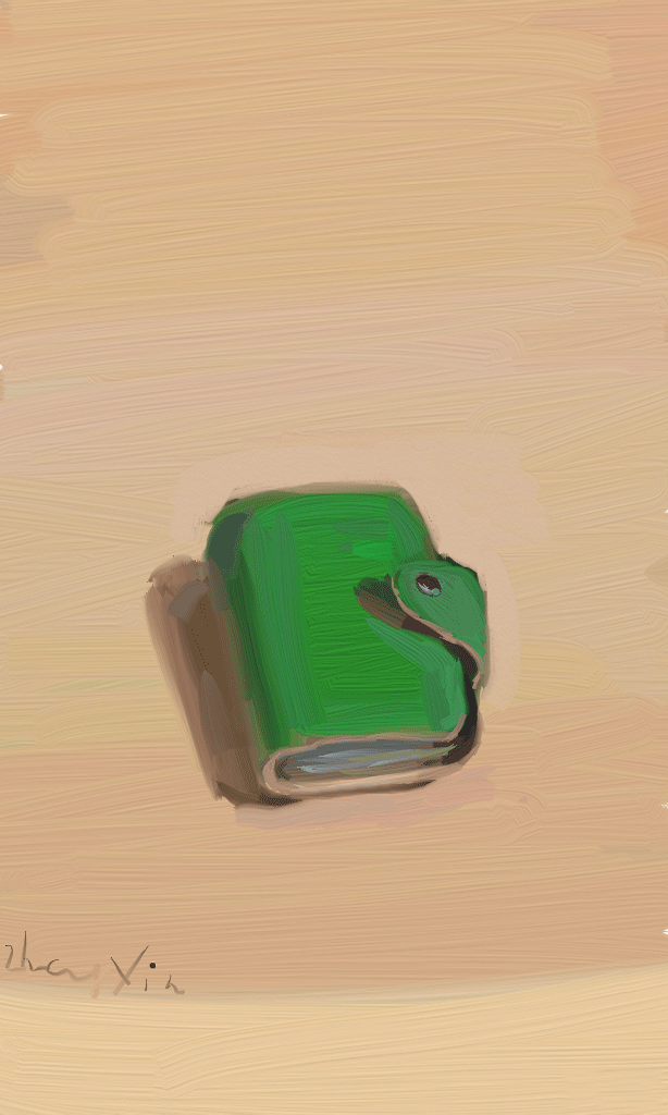 3、用绿色块画出名片夹,分出正侧立三个面来。这次选用Thick Gloss笔刷,用这个笔刷颜料更厚实,肌理感更强。