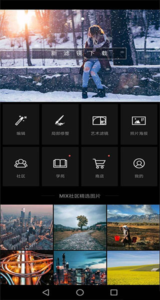 4、而最下方,便是MIX社区精选的图片区,优秀的作品可供参考,同样的,直接可以下载其滤镜效果。