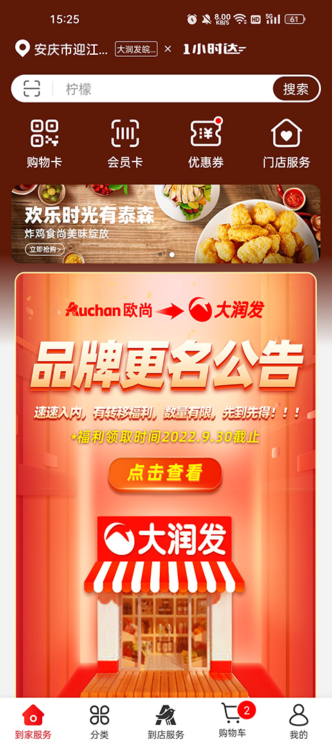 自动定位,匹配最近的欧尚超市,并且拥有购物卡、会员卡、优惠券、门店服务等服务;
