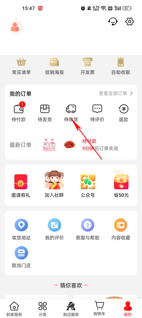5、绑定之后,就可以使用欧尚到家app进行购物付款了。