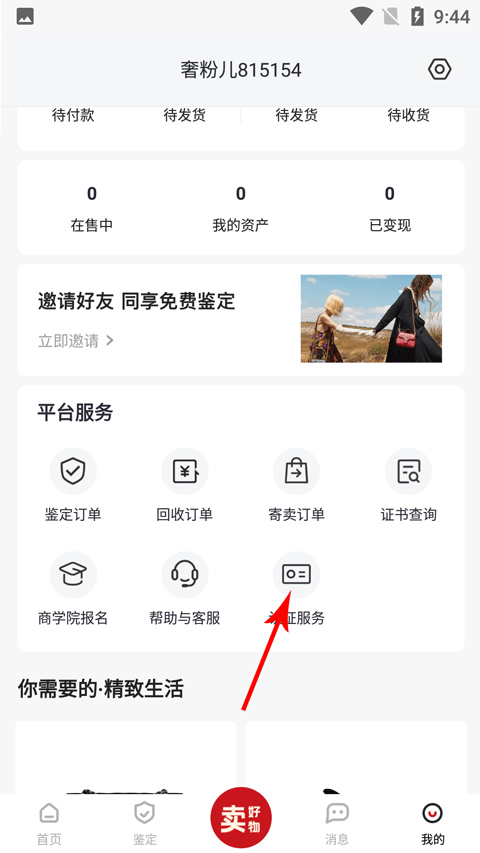 最后来到个人页面,找到鉴定订单查看鉴定结果。