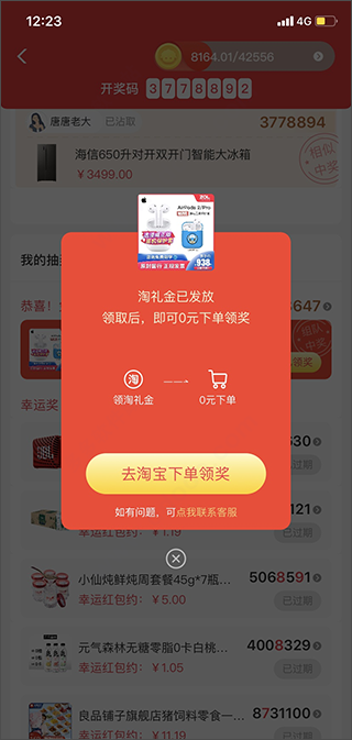 7、领奖无须缴税,奖品以等额淘礼金形式发,去淘宝下单,淘礼金全额抵扣